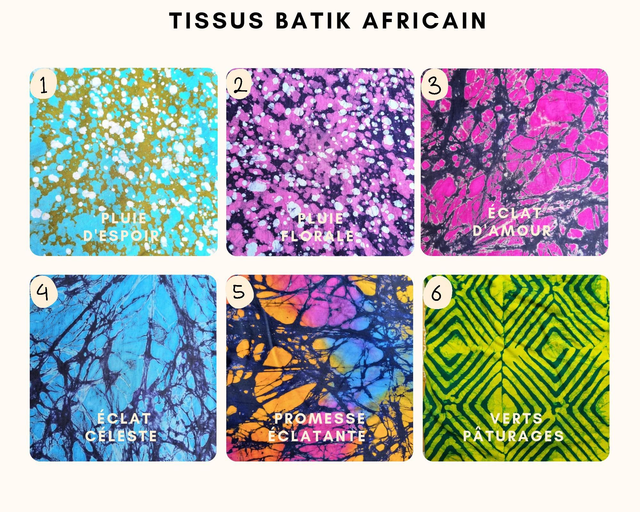 - Tissu principal : tissu africain batik imprimé au Togo 100% coton et éthique